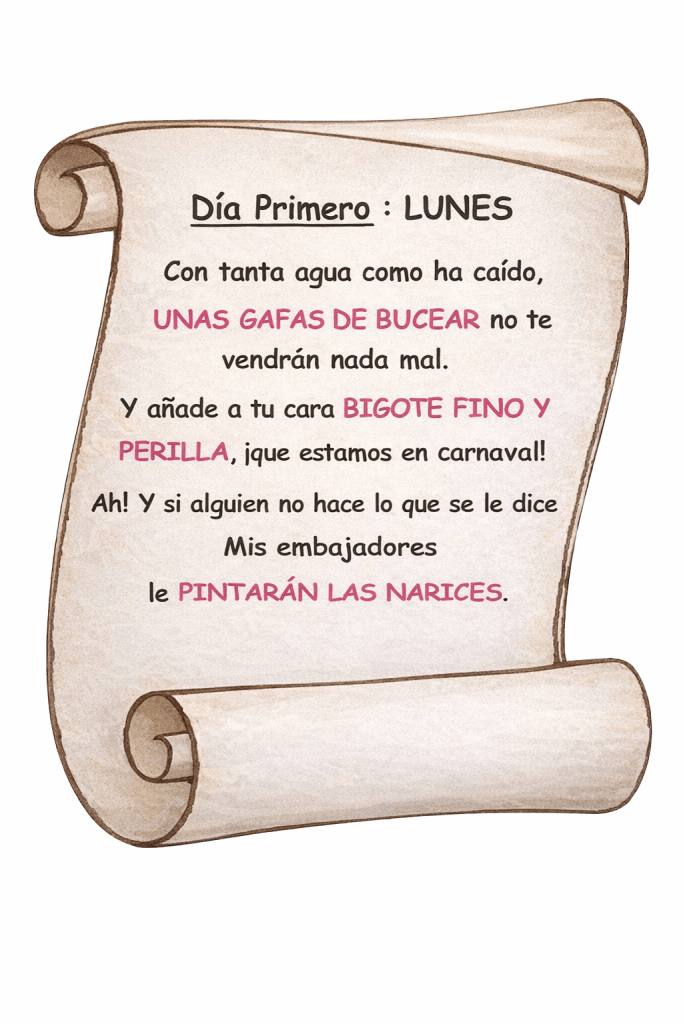 Os mandaré por adelantado los mensajes de Carnaval. Ya sabéis, que me gusta que todos los días me saludéis. Procurad cumplir mis mandatos o verrugas os saldrán y la lluvia sin fin en el patio caerá.