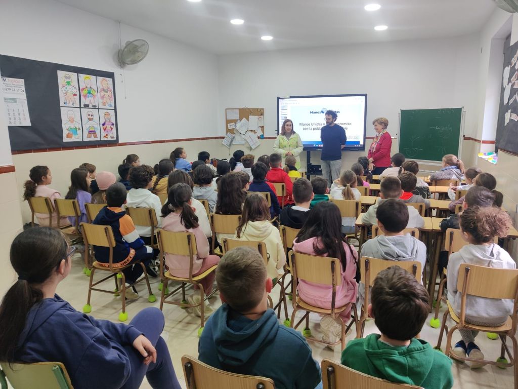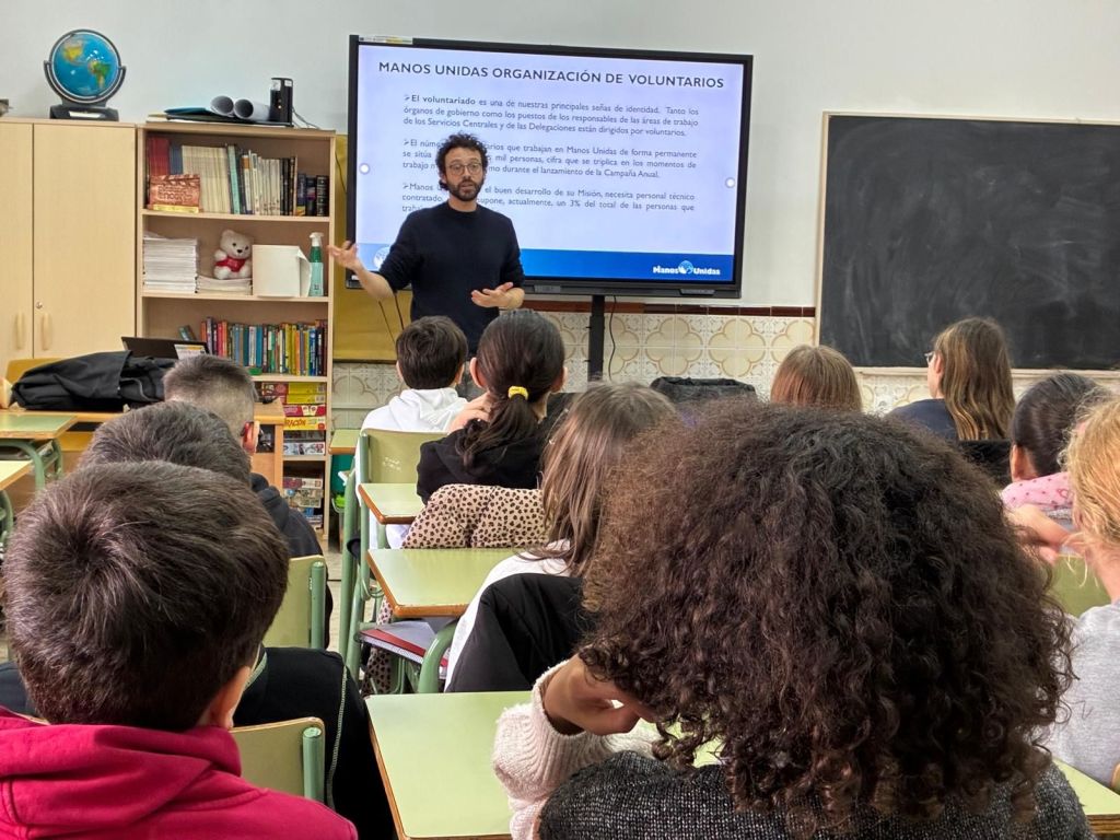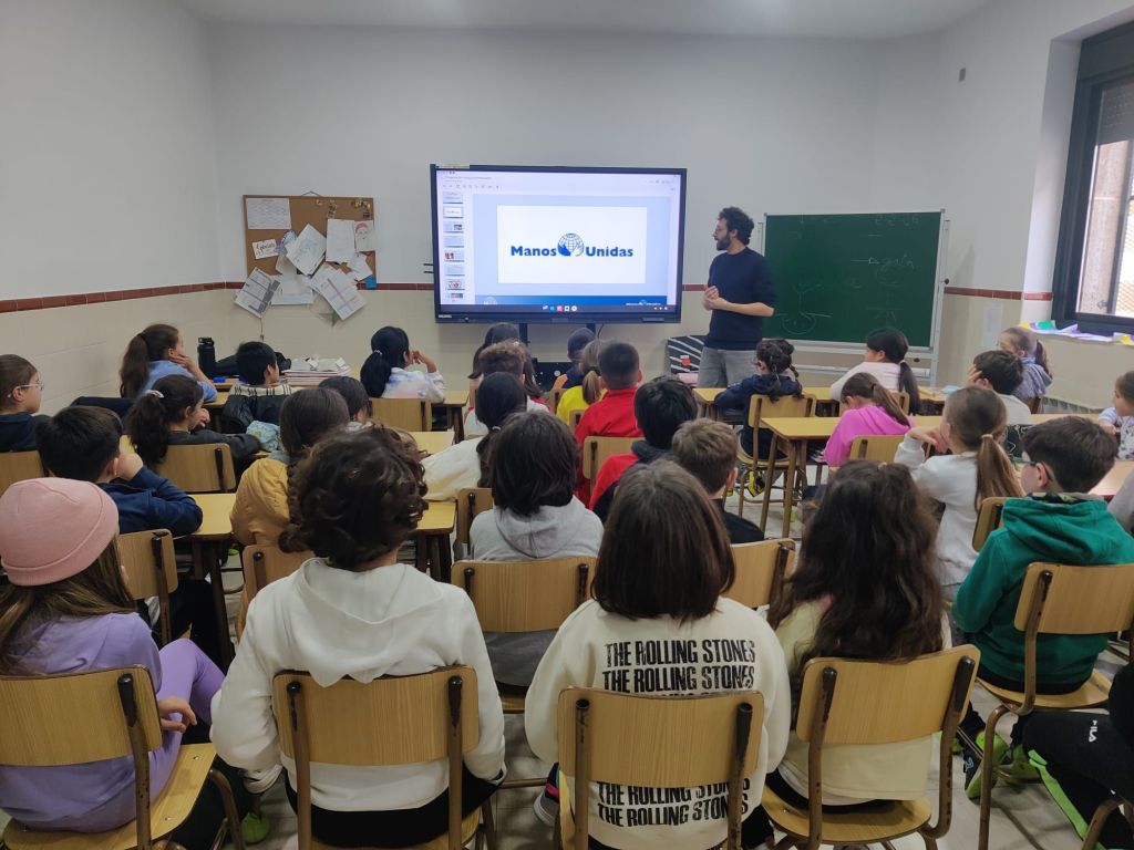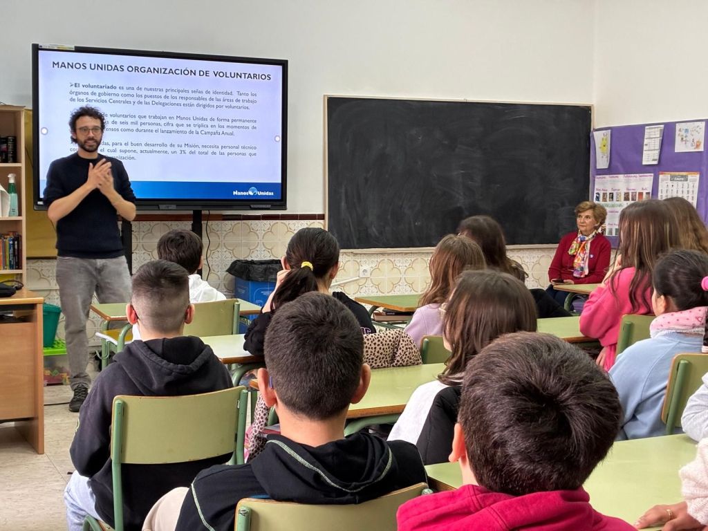 El lunes vino a nuestro colegio Jesús Pérez Campos, uno de los responsables de Proyectos de Manos Unidas a nivel nacional. Ha explicado a los alumnos de 3º, 4º, 5º y 6º de Primaria la importancia de las campañas solidarias que realiza Manos Unidas y los proyectos a los que se destina el dinero recaudado: sanitarios, educativos y de promoción de las personas con menos recursos. Ha estado también con nosotros Ángeles Valero, delegada diocesana de manos Unidas en Plasencia.