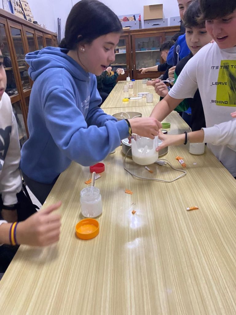 Los alumnos de 1º de ESO han elaborado yogur utilizando kéfir y cultivos de bacterias lácticas con el objetivo de estudiar el proceso de fermentación. A través de esta experiencia práctica, han podido observar cómo los microorganismos transforman la lactosa de la leche en ácido láctico, provocando cambios en la textura, el sabor y la conservación del alimento. Han aprendido qué es la fermentación, qué papel desempeñan las bacterias y hongos y por qué este proceso ha sido fundamental en la alimentación humana a lo largo de la historia.