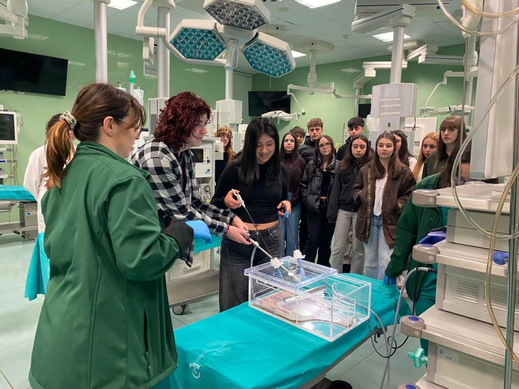 A continuación, visitaron el Centro de Cirugía de Mínima Invasión Jesús Usón, donde participaron en una experiencia educativa realmente especial. Los estudiantes pudieron practicar técnicas básicas de laparoscopia y conocer de primera mano los avances en bioingeniería, acercándose al mundo de la investigación científica y la innovación médica.