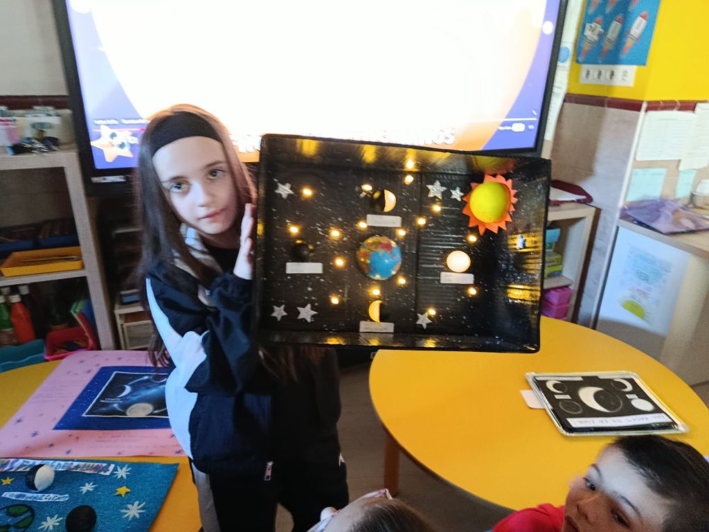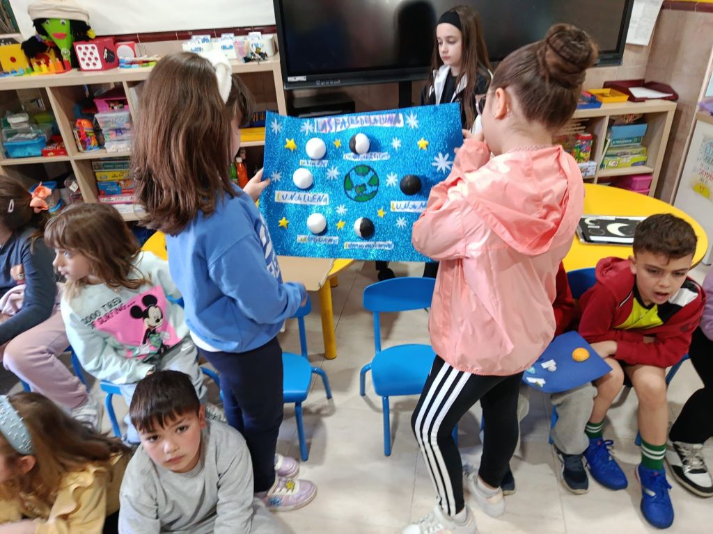 Los alumnos de 2ºde Primaria han realizado una visita muy especial, han ido a la clase de 2ºde Infantil para compartir con los más pequeños todo lo que han aprendido sobre las fases de la Luna.