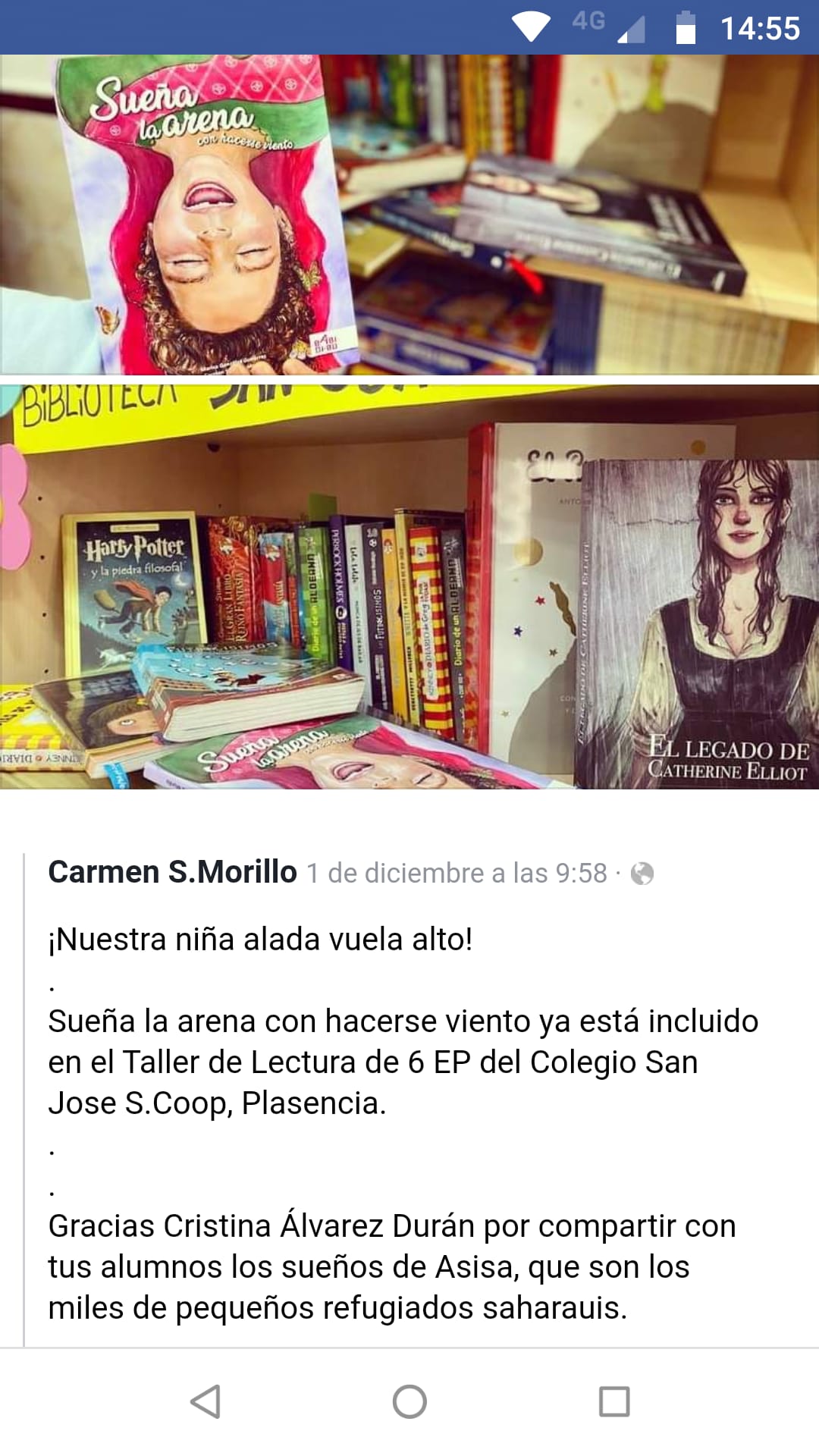 La ilustradora Carmen S. Morillo agradece al centro a través de las redes sociales la inclusión de su obra en el taller de lectura de 6º de Primaria.