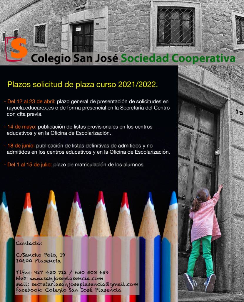 • Para más información pueden ponerse en contacto con nosotros a través del correo: secretariasanjoseplasencia@gmail.com o del teléfono: 630503659