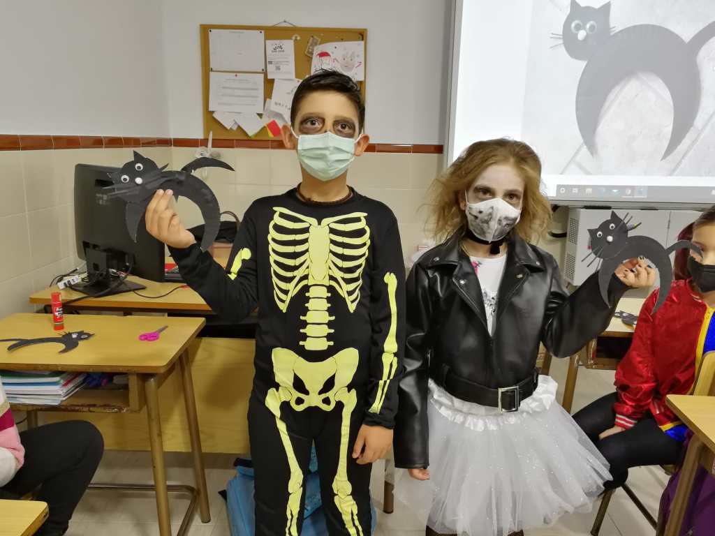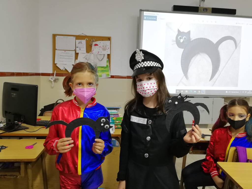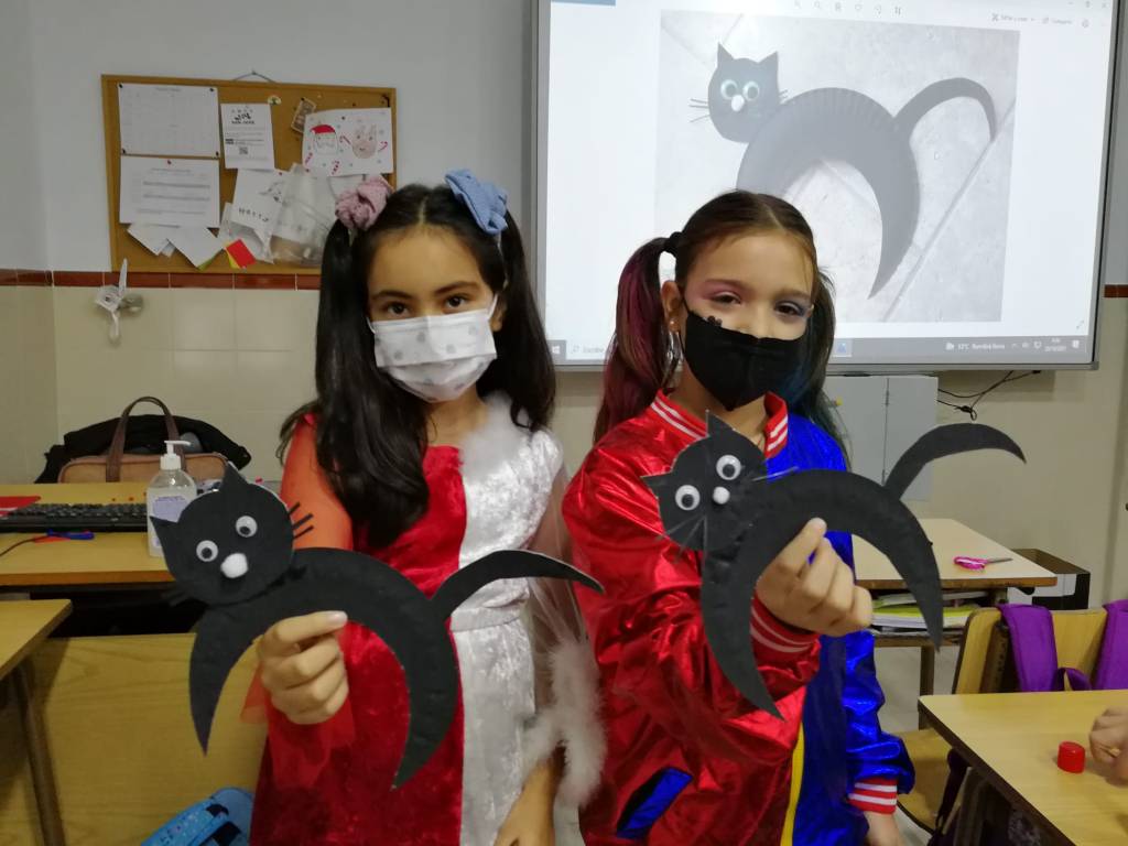 No sólo se disfrazaron, también aprendieron y recordaron vocabulario en inglés con Tyler y, con sus manitas, hicieron unas divertidísimas arañas, murciélagos y gatos negros para decorar.