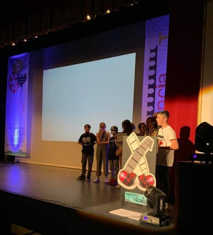 Varios alumnos acompañados de la directora de Infantil y Primaria subieron al escenario a recoger el trofeo y agradecer al jurado y la organización este reconocimiento. Es un orgullo contar en Plasencia con un Festival de cine educativo y además internacional.