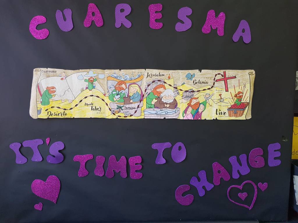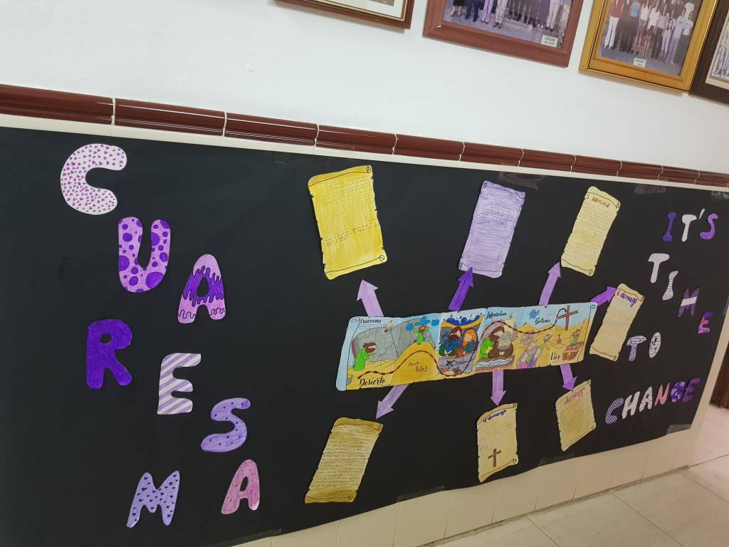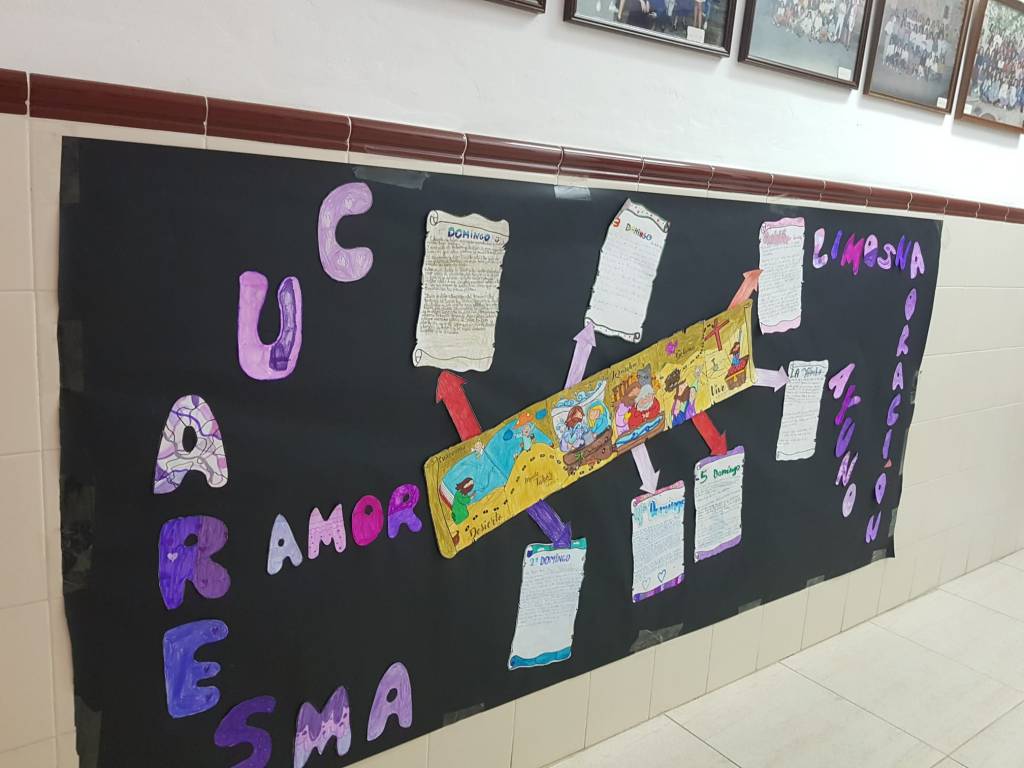 Los alumnos de 3°, 4°, 5° y 6° de primaria han estado trabajando en Religión el tema de la Cuaresma (qué es y cómo nos preparamos para andar ese camino), para ello han realizado diversos trabajos: pergaminos, murales, búsqueda en la Biblia, marcapáginas, etc. (A partir del material proporcionado por Fano en internet y con la transformación de ese material por parte de los alumnos). Os dejamos con algunas fotos.