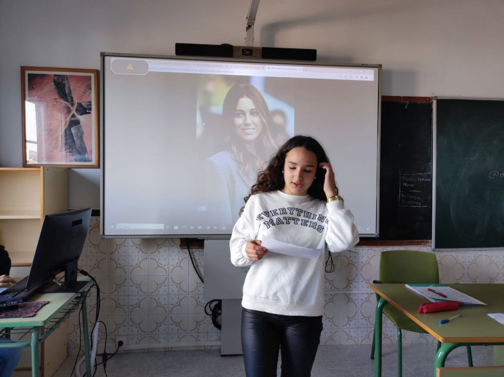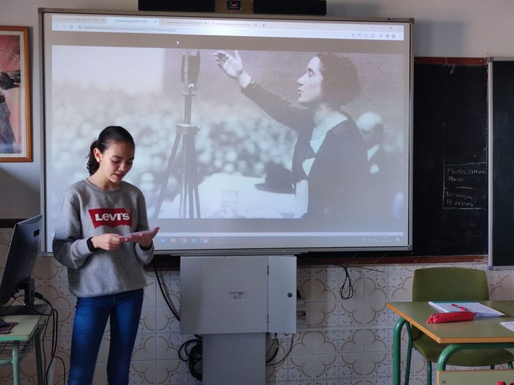 El pasado 8 de marzo, Día Internacional de la Mujer, los alumnos y alumnas de Secundaria eligieron a mujeres célebres de distintas épocas y de diferentes profesiones como la política, la ciencia, la música, la danza, el cine, la moda, la literatura, el deporte, la aviación…Y hablaron de ellas en inglés ante sus compañeros y compañeras de clase.