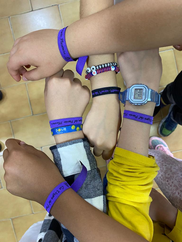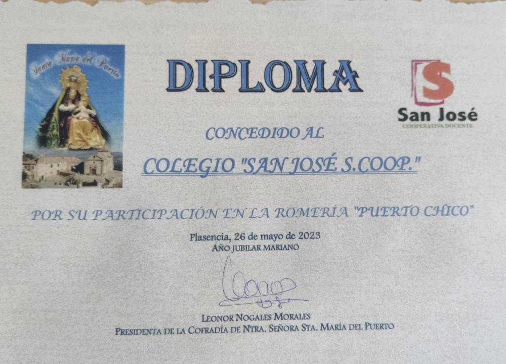 Ayer, martes, vinieron al colegio tres miembros de la junta directiva de la Cofradía de la Virgen del Puerto y nos dieron una sorpresa genial: nos trajeron el diploma conmemorativo que habían preparado para el Puerto Chico y nos dieron pulseras para los alumnos de 1º y 2º de Primaria, que eran los cursos de nuestro colegio que iban a participar en esta romería.