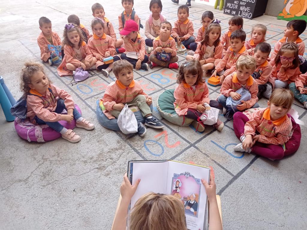 Hace unos días los alumnos de infantil visitamos la biblioteca municipal y la Feria del Libro. En uno y otro lugar hemos disfrutamos de un mundo maravilloso de cuentos, que poco a poco vamos pudiendo disfrutar leyendo nosotros solitos. ¡Qué suerte tenemos de que nuestro cole esté en el centro de Plasencia y tan cerquita de todo!.