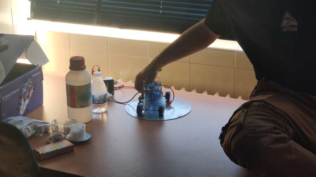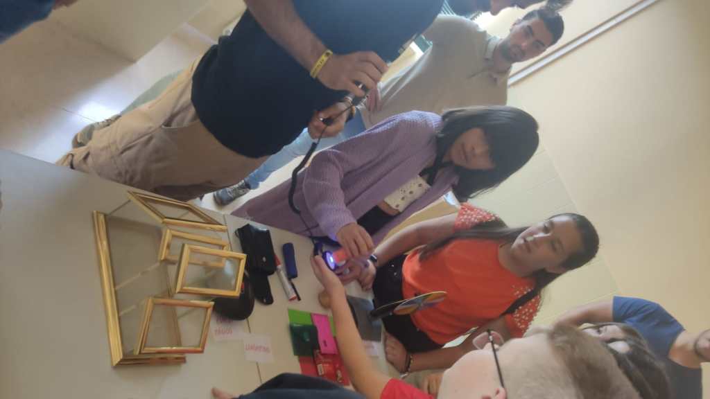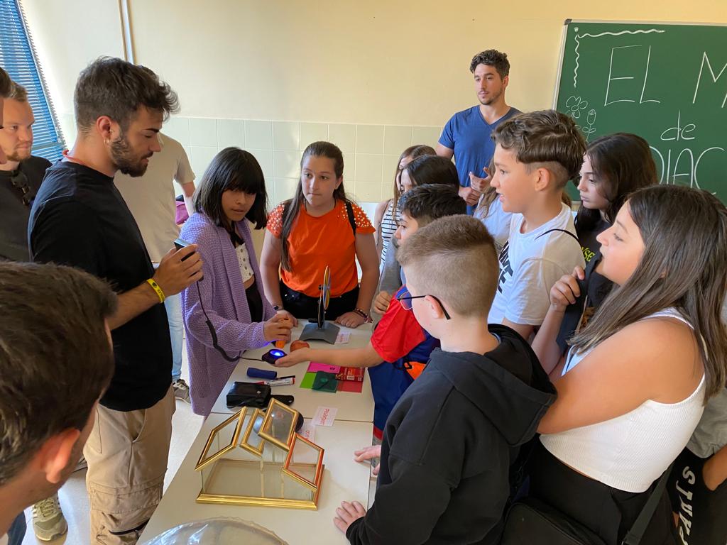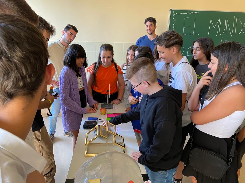 Repartidos en grupos, han ido rotando por los diferentes talleres. En ellos, los alumnos y alumnas del Grado les han mostrado diferentes experimentos en los que han trabajado.