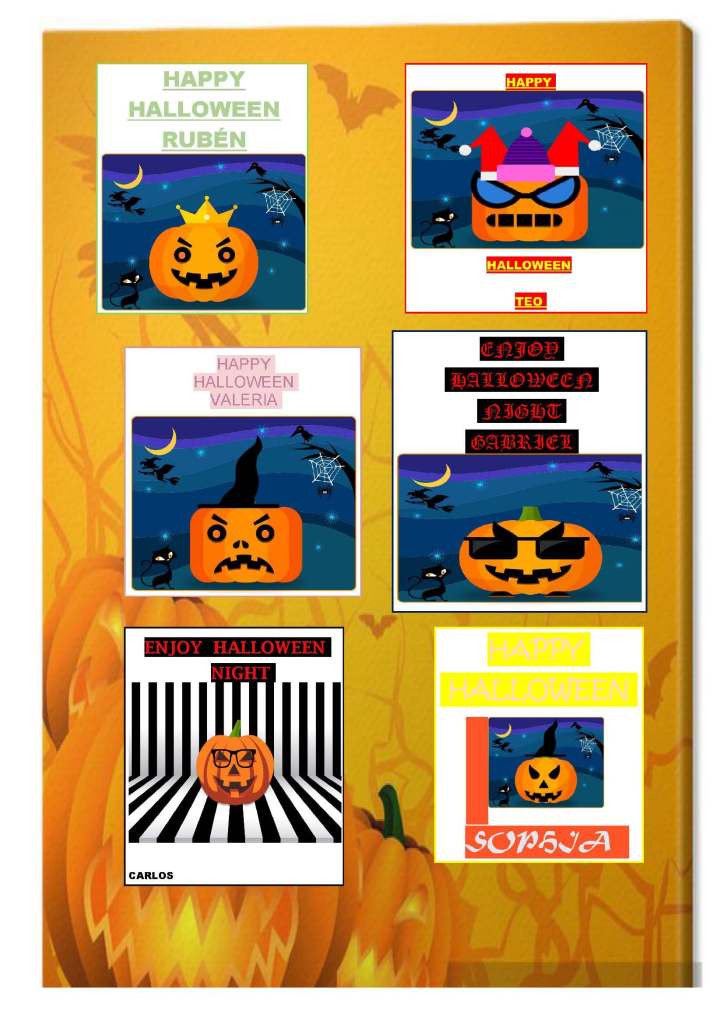 En la extraescolar de Informática hemos creado unos carteles sobre Halloween. Al hacerlos, hemos practicado el manejo del ratón y de sus botones, nos hemos familiarizado con parte de la barra de herramientas, y hemos utilizado las posibilidades que nos ofrece internet para dar rienda suelta a nuestra creatividad.