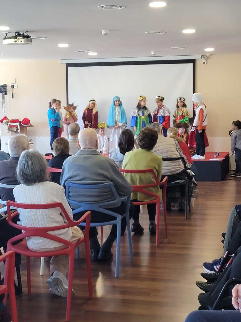 Este año, los alumnos de 1º y 2º de Primaria, hemos sido invitados por la Residencia de mayores Virgen del Puerto a cantar los villancicos con los entrañables abuelos y abuelas que viven allí. También les hemos representado la pequeña obra de teatro que ofreceremos a Jesús en nuestra misa de Navidad.