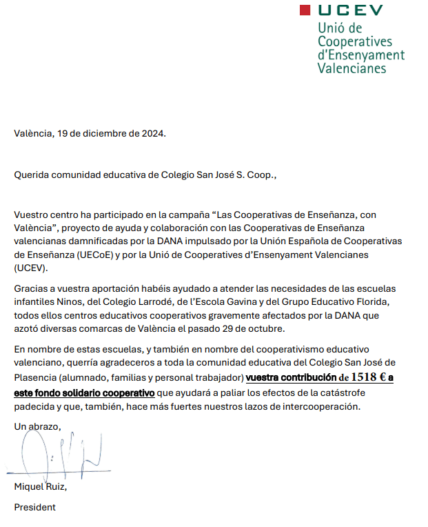 Gracias a la dirección del Centro por apoyar la actividad y a toda la comunidad educativa. Con vuestra colaboración haremos realidad el mensaje de este año: «En Navidad abrimos camino a la esperanza estando más cerca de los que nos necesitan».