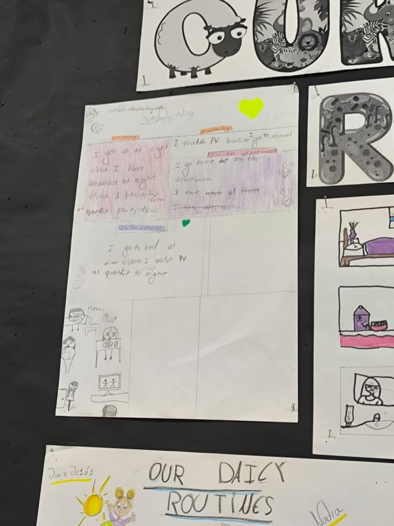 En la clase de 4º estamos aprendiendo a hablar y escribir sobre nuestras rutinas diarias, indicando también a qué hora hacemos cada cosa. Si pudiéramos organizar nosotros nuestro día ideal sería muy chulo, ¿verdad? En las fotos tenéis algunas de nuestras propuestas para un día ideal. Esperamos que os gusten.