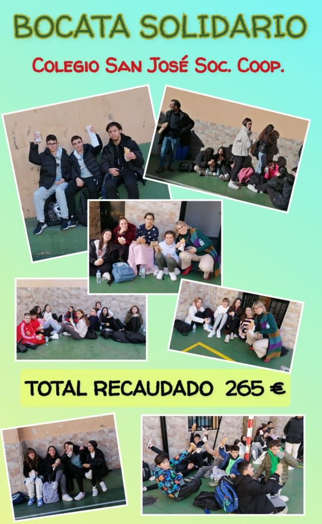 Cáritas Interparroquial agradece de corazón al Colegio San José la participación de alumnos y profesores de la ESO en la Campaña de Navidad a través del «bocata solidario» que han compartido esta mañana y cuya recaudación se destinará a la realización de los proyectos en favor de las personas y familias que están pasando por situaciones de dificultad en estos momentos.