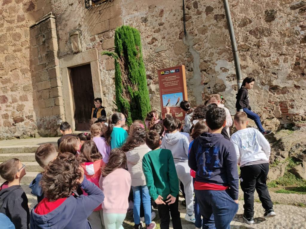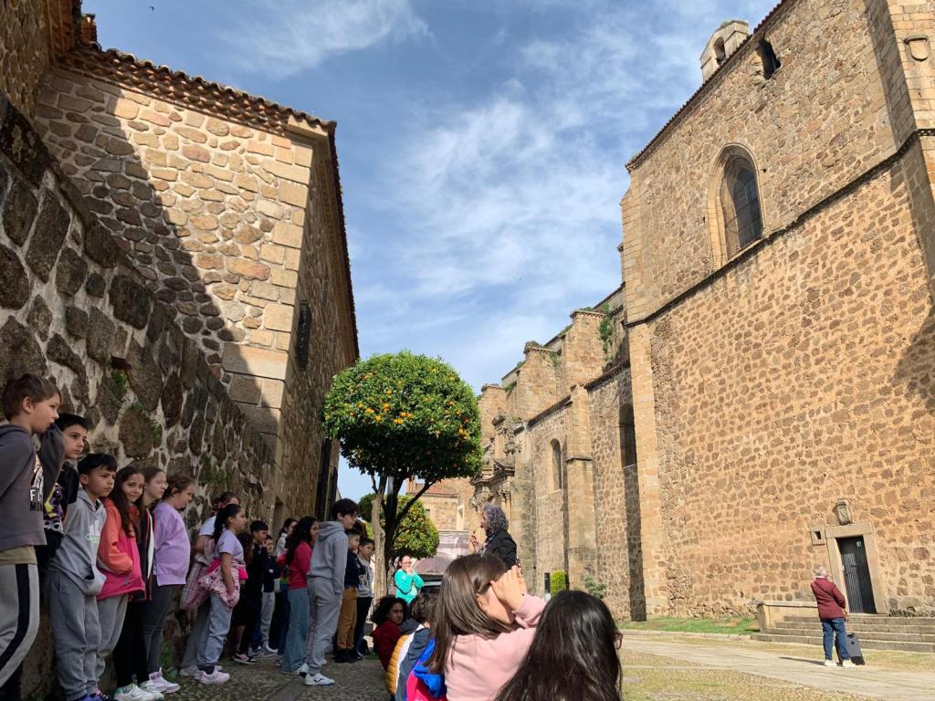 Los alumnos de 3° y 4° hemos salido a conocer in situ algunas leyendas y curiosidades de nuestra ciudad. De la mano de los alumnos de tercero, hemos conocido la leyenda del «Cristo del Borrego» (Cristo que está en esa calle) y la leyenda de la «Niebla del arroyo Nieblas» (que se ha contado en la puerta del palacio de los Monroy, ya que tiene que ver con ellos). De la mano de los de cuarto, hemos recorrido otra calle cercana a nuestro cole y han enseñado a los demás un curioso Belén que hay en la pared de un edificio antiguo. También hemos conocido algo sobre los cernícalos primilla de Santo Domingo. ¡Un recorrido de lo más educativo!