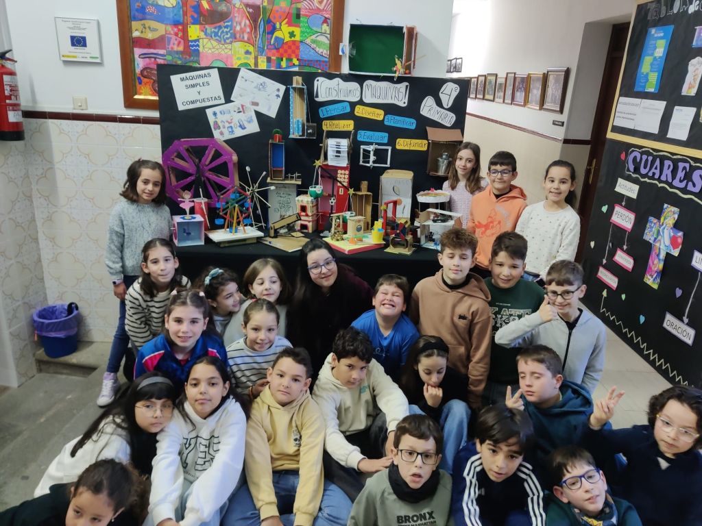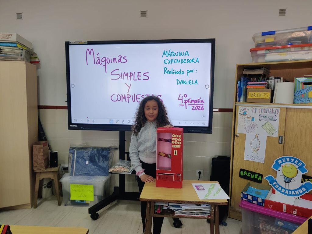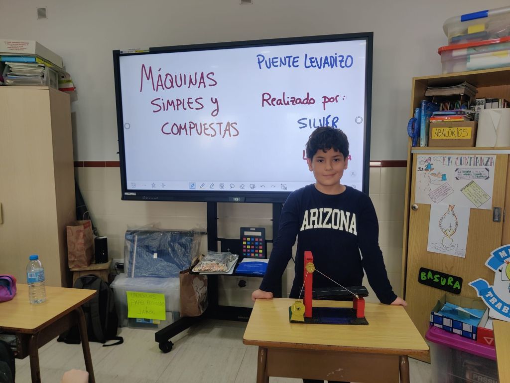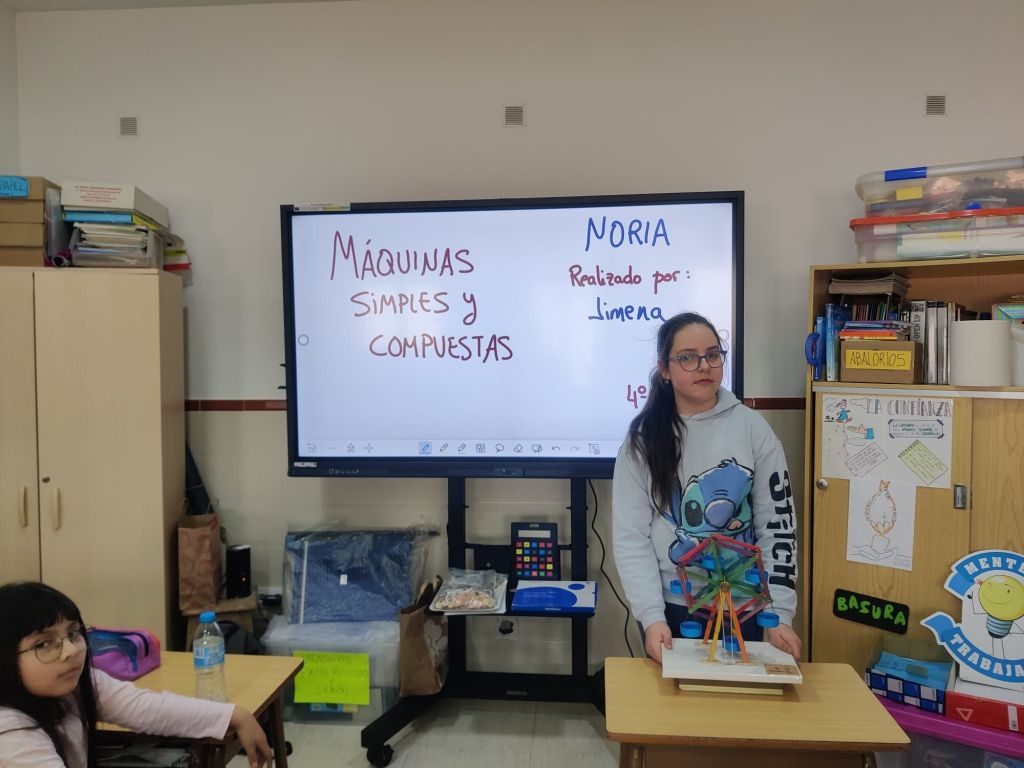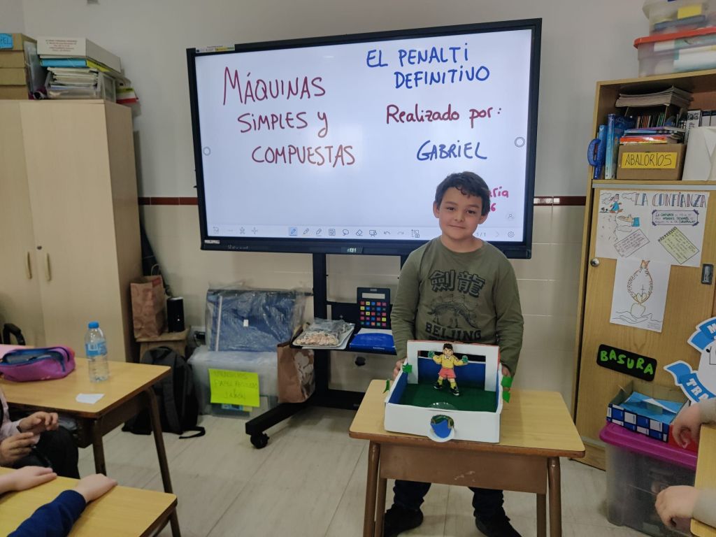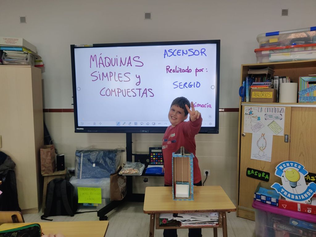 Al terminar el trimestre, los alumnos de 4° de primaria hicieron una exposición con sus maquetas sobre máquinas simples y compuestas. Previamente tuvieron que presentar y exponer en clase sus trabajos. ¡Qué bien quedaron!