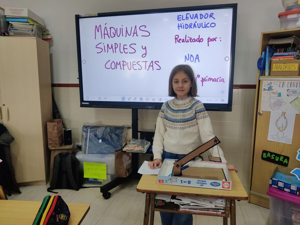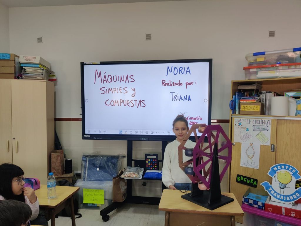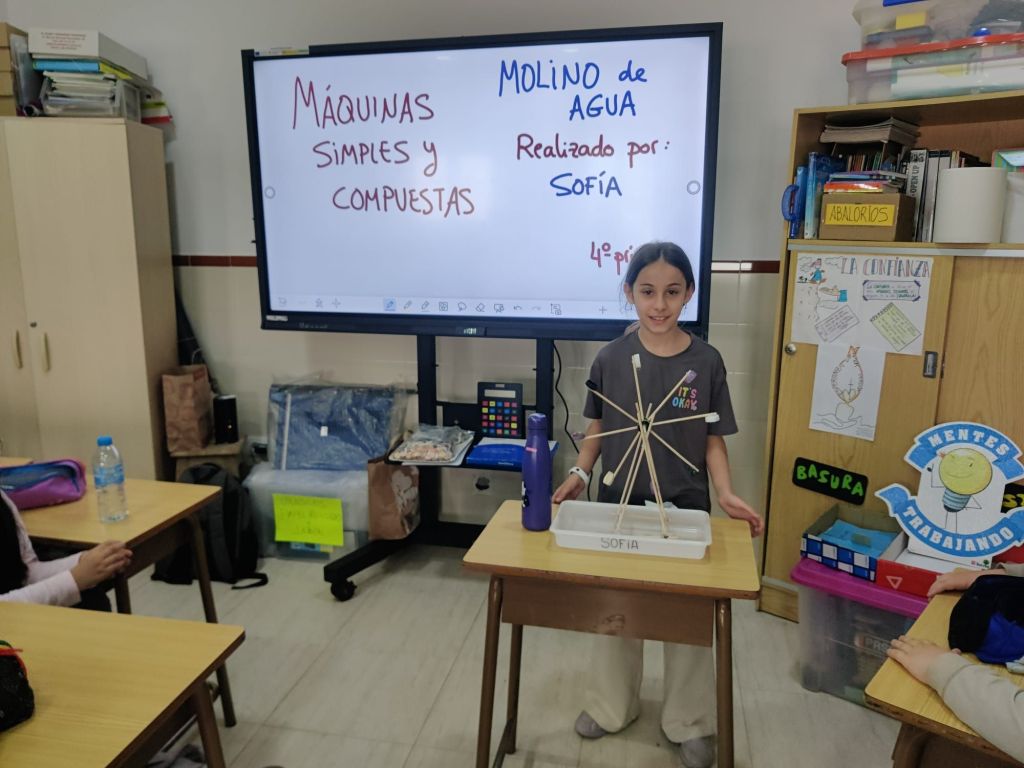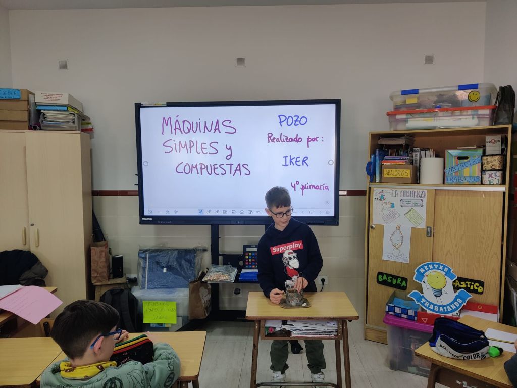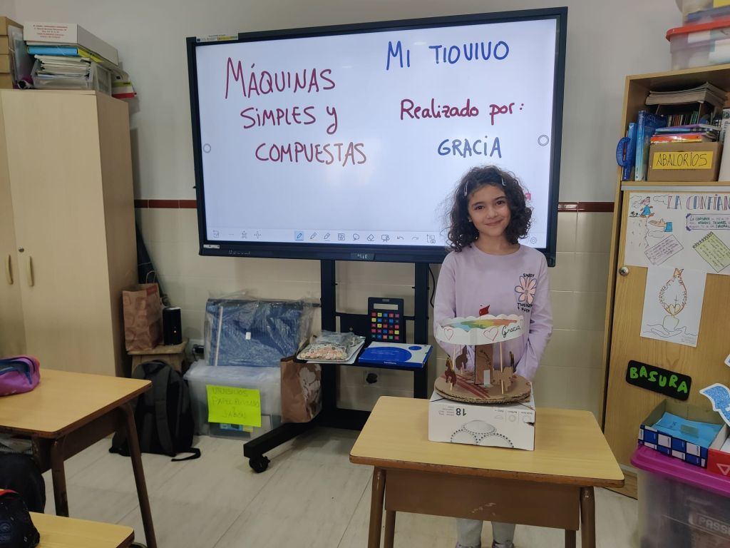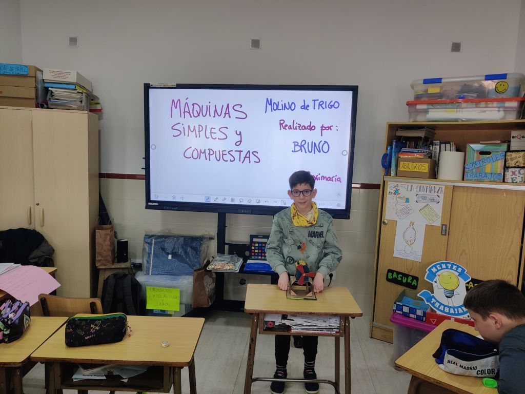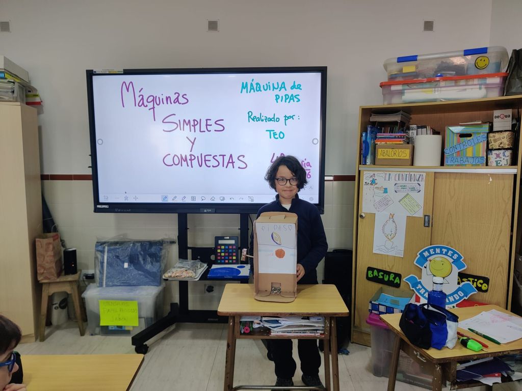 Al terminar el trimestre, los alumnos de 4° de primaria hicieron una exposición con sus maquetas sobre máquinas simples y compuestas. Previamente tuvieron que presentar y exponer en clase sus trabajos. ¡Qué bien quedaron!