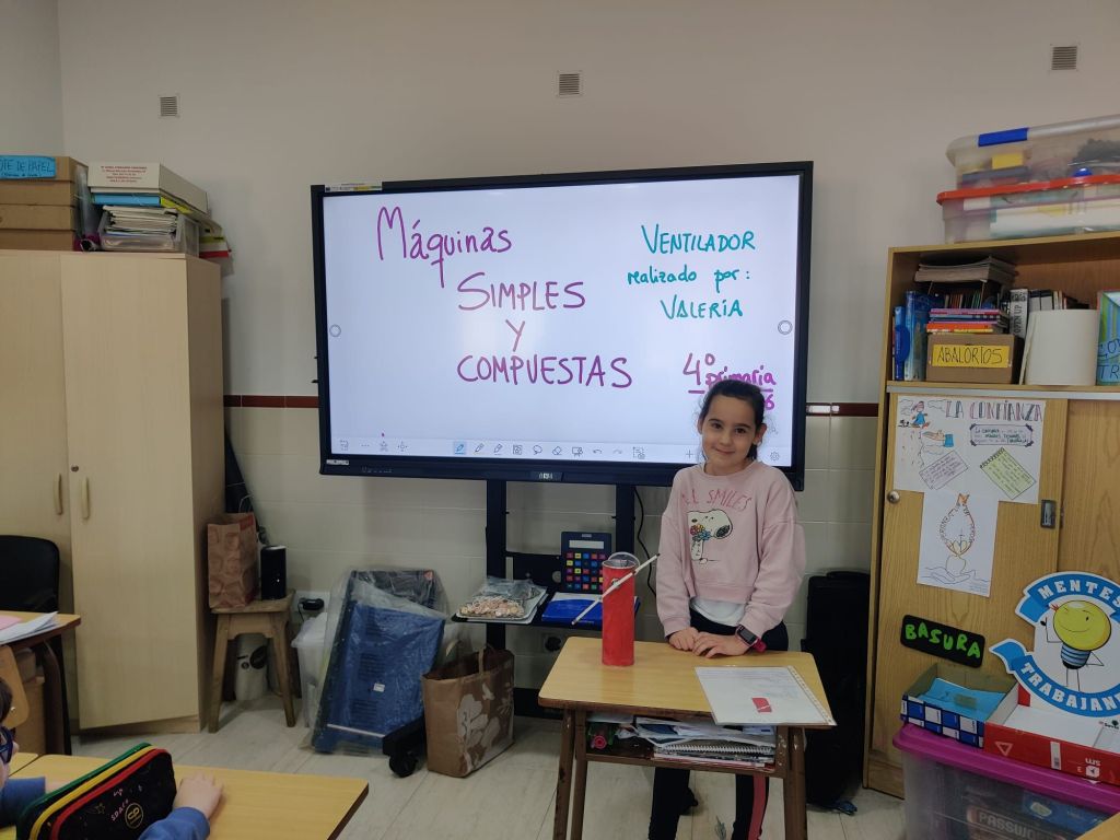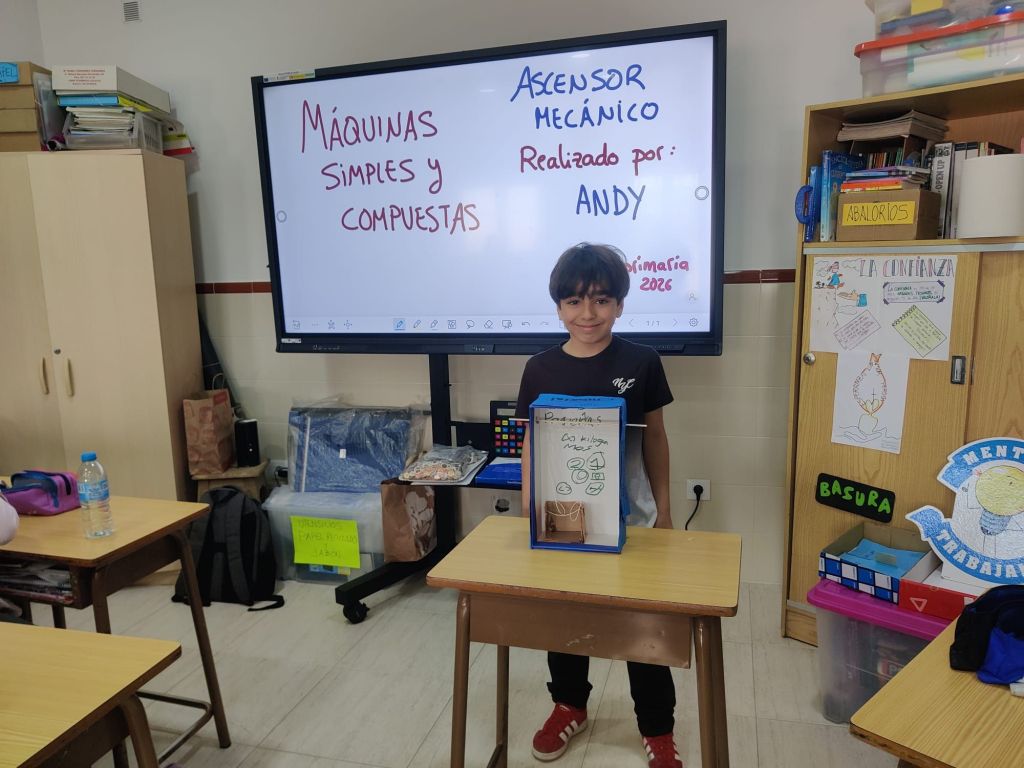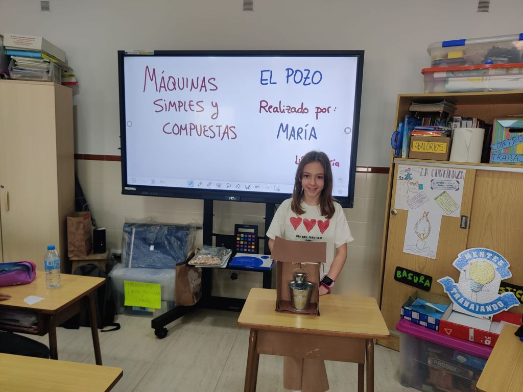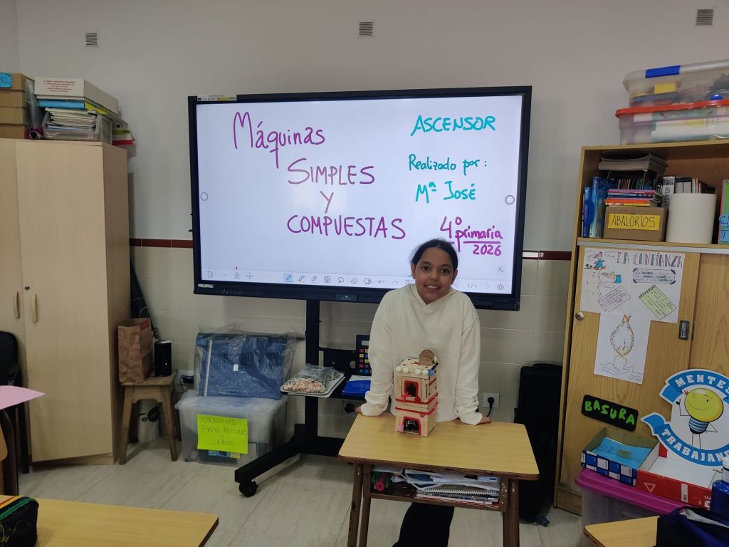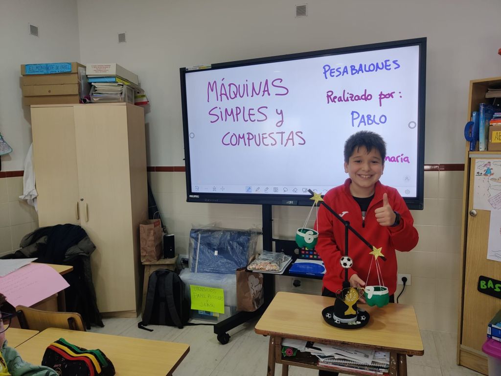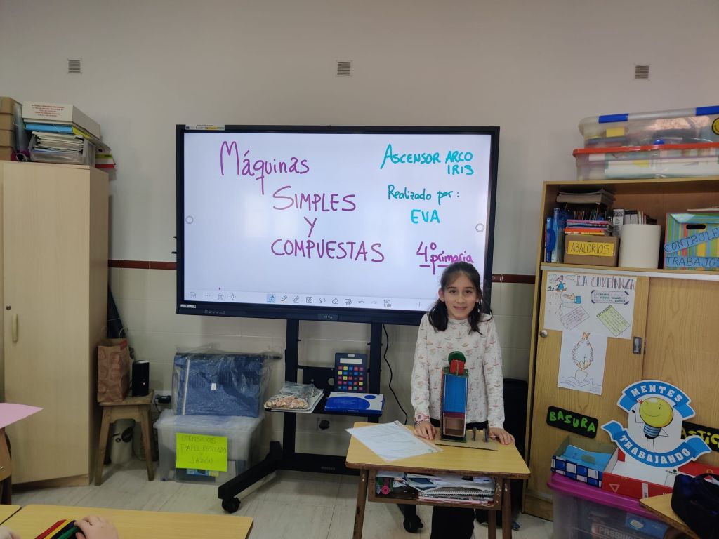 Al terminar el trimestre, los alumnos de 4° de primaria hicieron una exposición con sus maquetas sobre máquinas simples y compuestas. Previamente tuvieron que presentar y exponer en clase sus trabajos. ¡Qué bien quedaron!